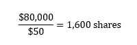 Let’s say your portfolio is worth $1,000,000 and you want to figure out how many shares of ABC stock to buy, with shares trading at $50.