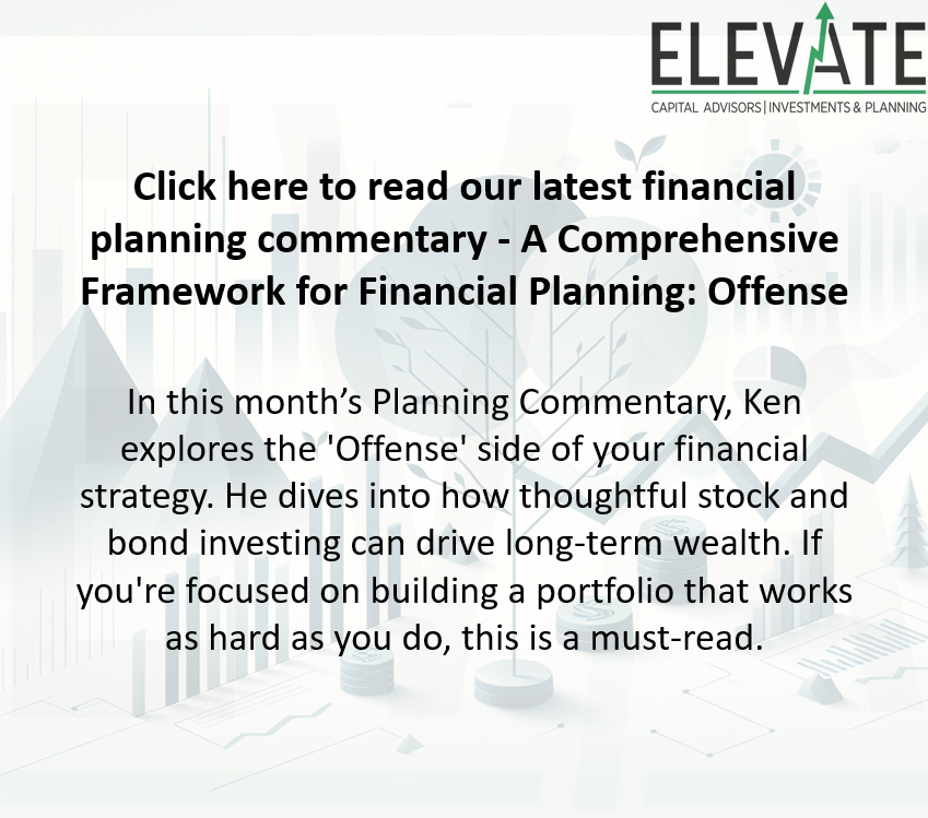 This commentary expresses the views of the author as of the date indicated and such views are subject to change without notice. Elevate Capital Advisors, LLC (“Elevate”) has no duty or obligation to update the information contained herein. This information is being made available for educational purposes only. Certain information contained herein concerning economic trends and performance is based on or derived from information provided by independent third-party sources. Elevate believes that the sources from which such information has been obtained are reliable; however, it cannot guarantee the accuracy of such information and has not independently verified the accuracy or completeness of such information or the assumptions on which such information is based. This memorandum, including the information contained herein, may not be copied, reproduced, republished, or posted in whole or in part, in any form without the prior written consent of Elevate. Further, wherever there exists the potential for profit there is also the risk of loss.