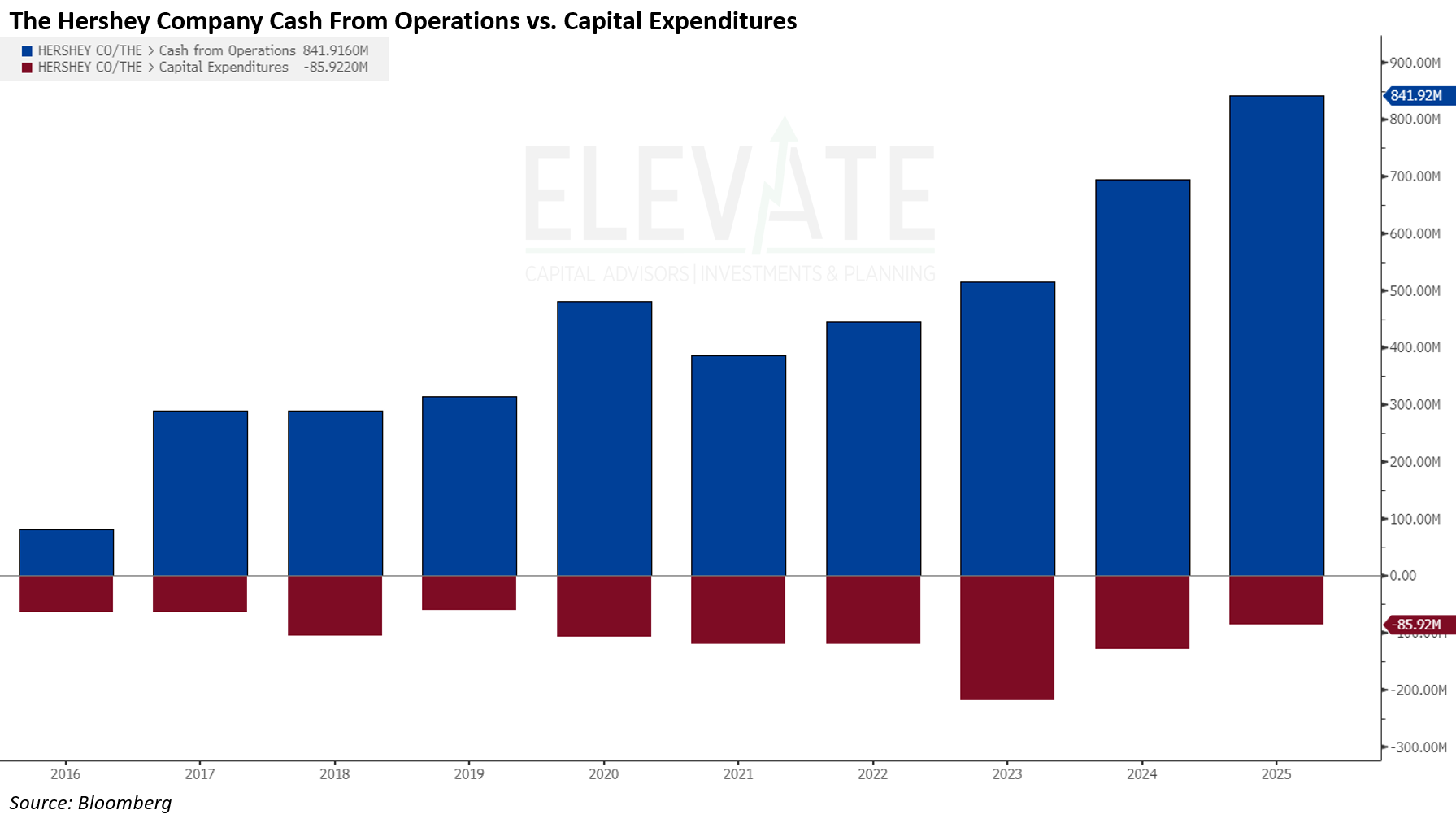 Refer back to the chart of Hershy's cash flows vs. capital expenditures. Does that look like a business that became less valuable over the past 2-3 years?