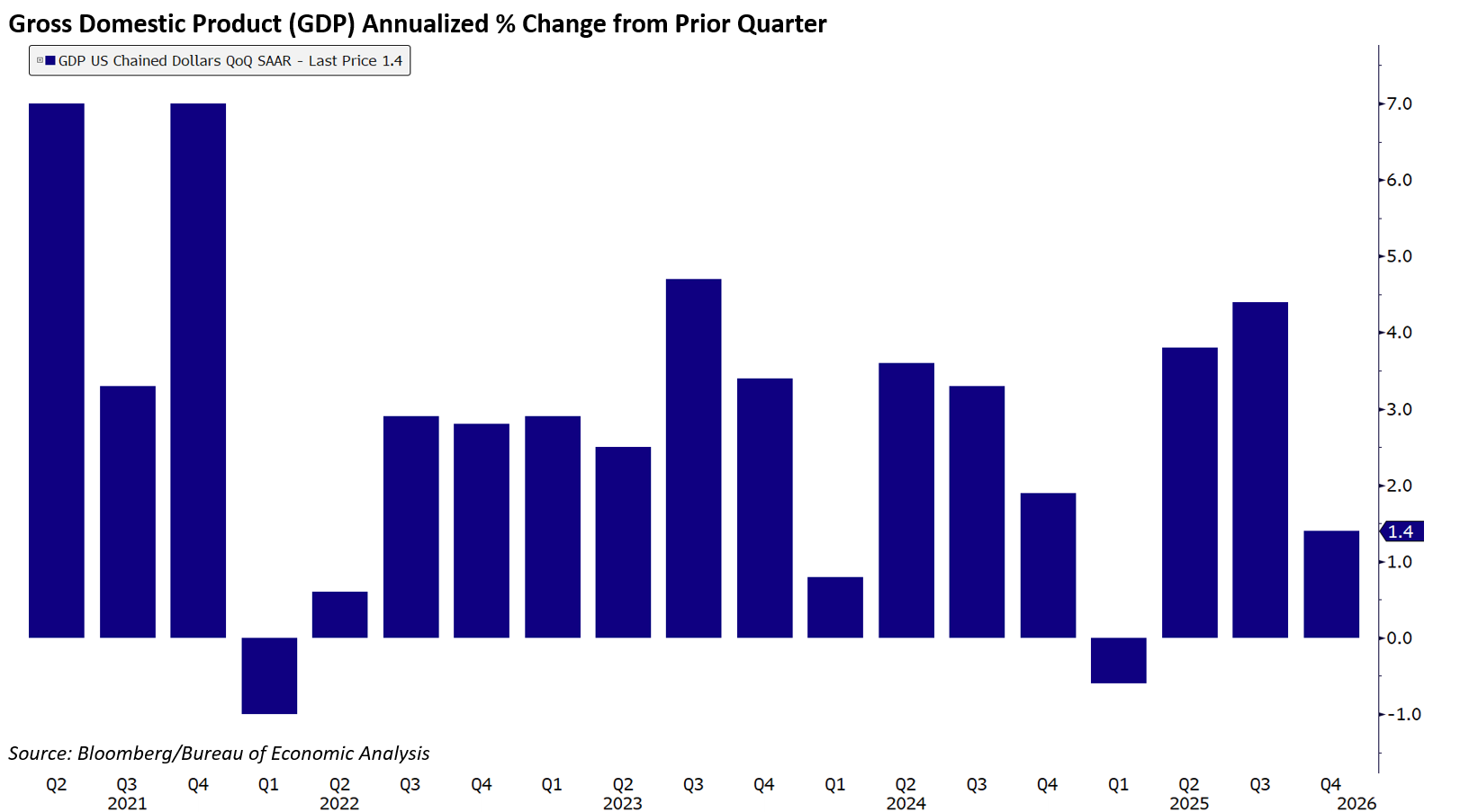 Meanwhile, the 4th-quarter GDP disappointed, coming in at only 1.4%, vs. expectations of 3%. This was just the first estimate, which will be revised again on March 13th before being finalized on April 9th. A lot can change between now and then, but the initial estimate suggests slowing economic growth.