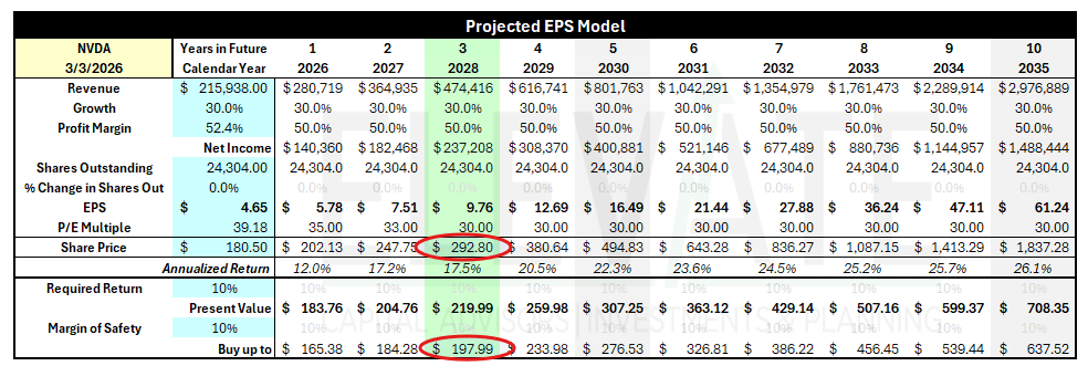 In other words, even assuming slower growth, lower margins, and multiple compression, NVDA can still justify an attractive entry point—if you’re disciplined about what you pay.