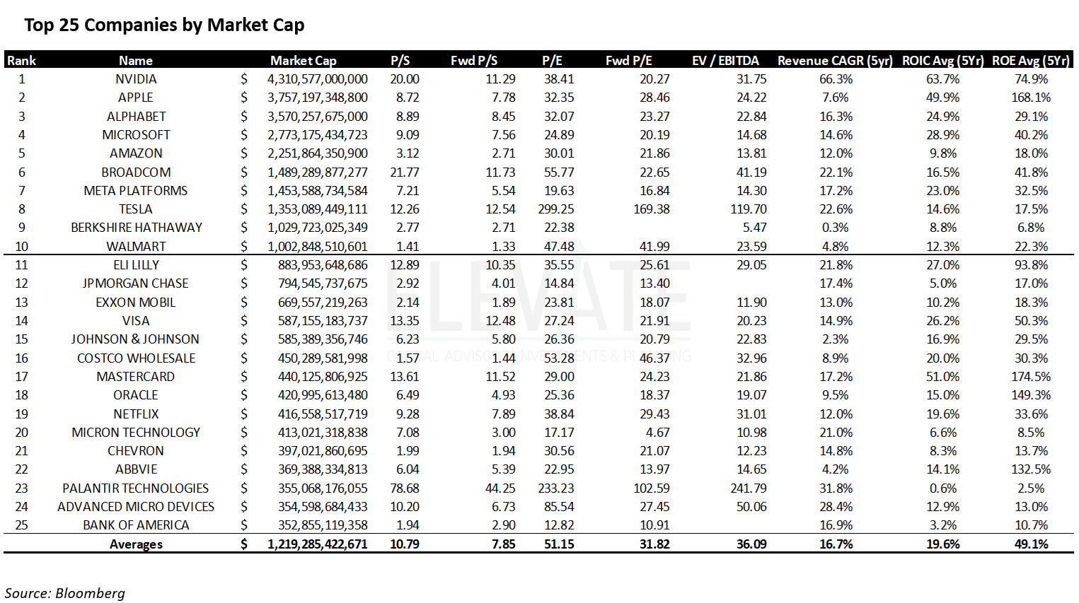 Eli Lilly (LLY) finished the month just outside the Top 10, at number 11, just behind Walmart (WMT). LLY is down about 14% this year, while WMT is up about 12%. These two companies, and JP Morgan (JPM), have all held the number 10 spot over the past year, and I am glad we chose to stick with LLY rather than swap them out over and over. Complicating matters is the impending IPO of SpaceX, which may come to market with a market cap of $2 Trillion. However, it will not be added to the S&P 500 Index immediately. It usually takes a year for a company to become eligible for the index, but the official rules have not been published. Standard & Poor's, the company responsible for index construction, will likely make an exception and add it, especially if it trades at over $2 Trillion and maintains good liquidity over the first few months it is public. This would push Berkshire Hathaway into the number 10 slot and leave LLY, WMT, and JPM all outside.
