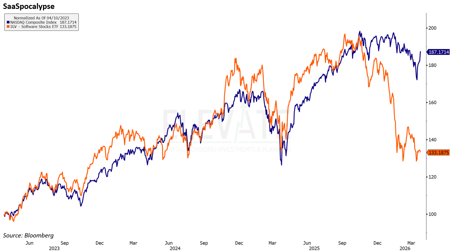 The SaaSpocalypse continues. While it hasn't accelerated over the past several weeks, with the whole market under pressure due to the war and everyone focused on oil prices, software stocks have really not participated in the market rally since the March lows.
