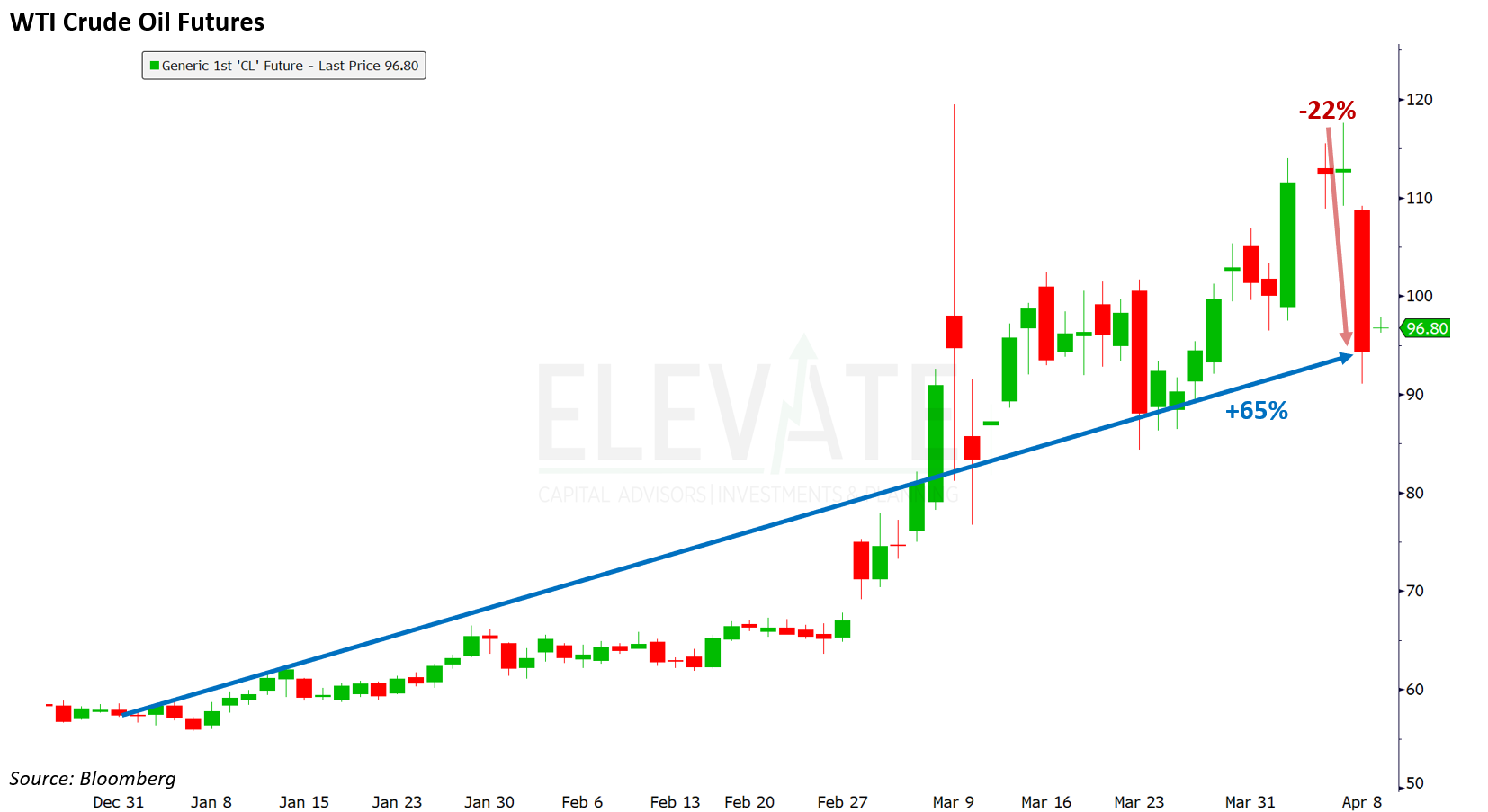 After the news of the deal last night, Crude Oil fell 22% from yesterday's highs. Great. On the other hand, currently trading at $95, West Texas Intermediate (WTI) Crude Oil futures are still up 65% for the year!